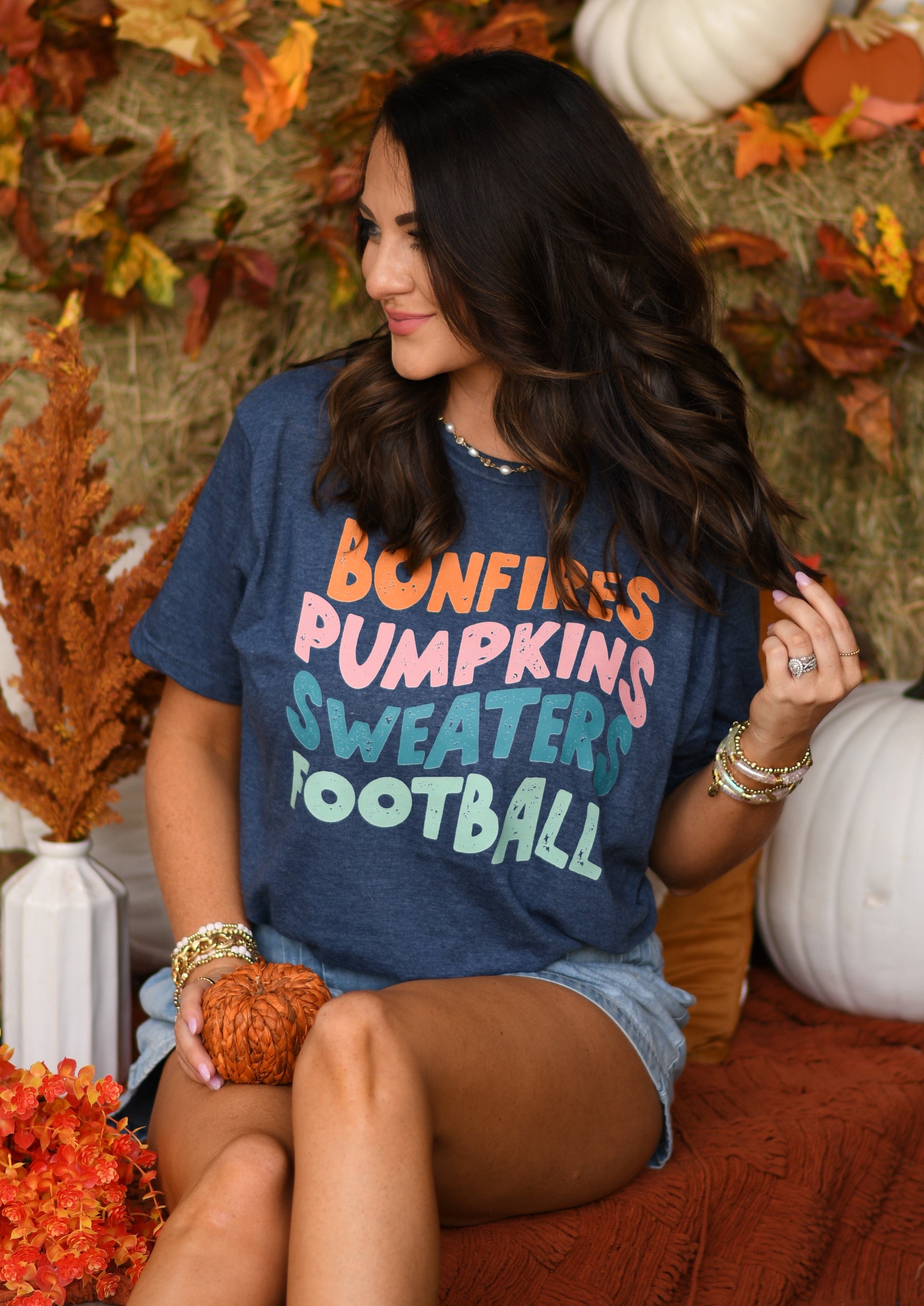 Bonfires Pumpkins Sweaters Football Tee