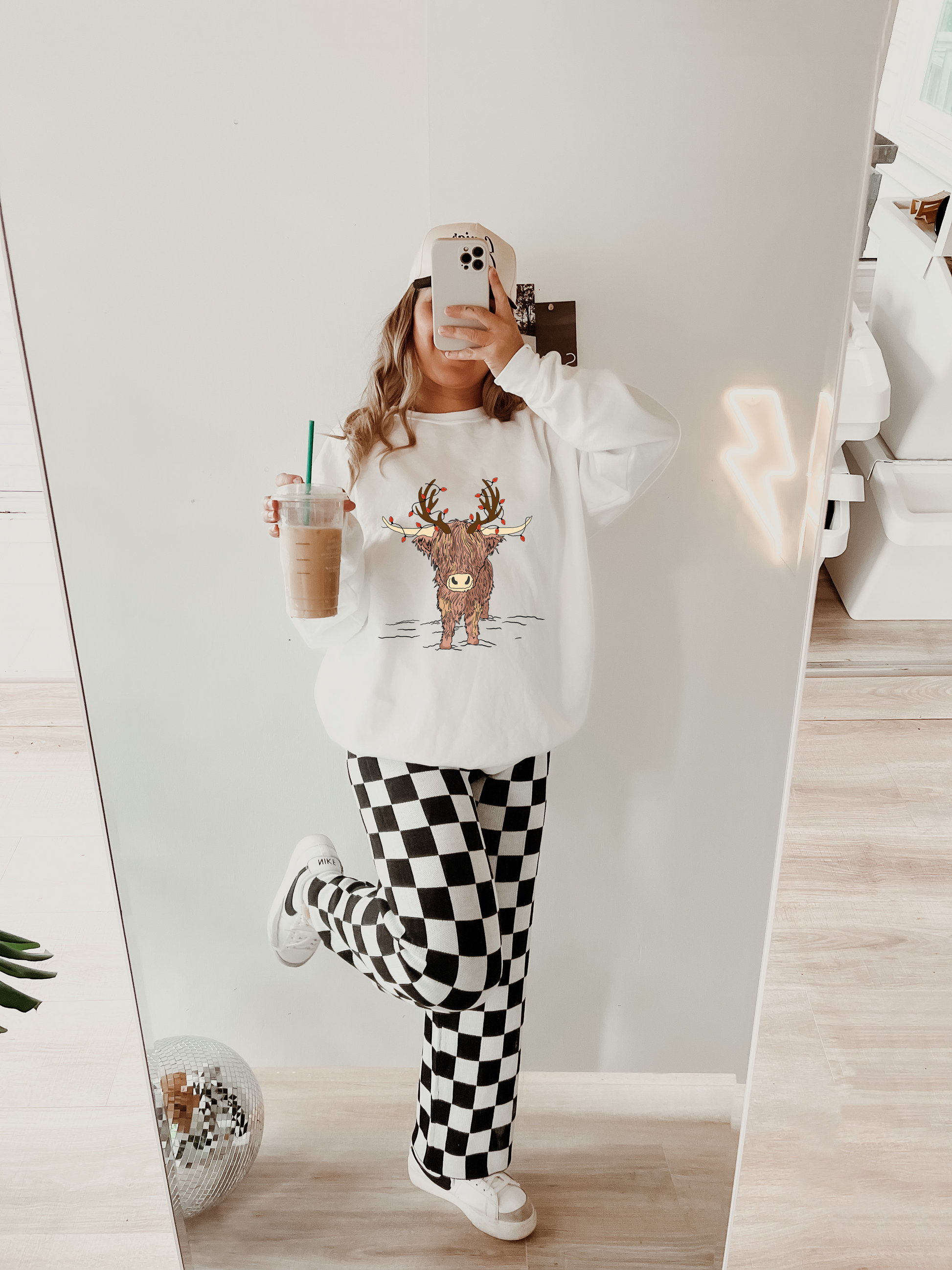 Christmas lights highland cow design on tee or sweatshirt