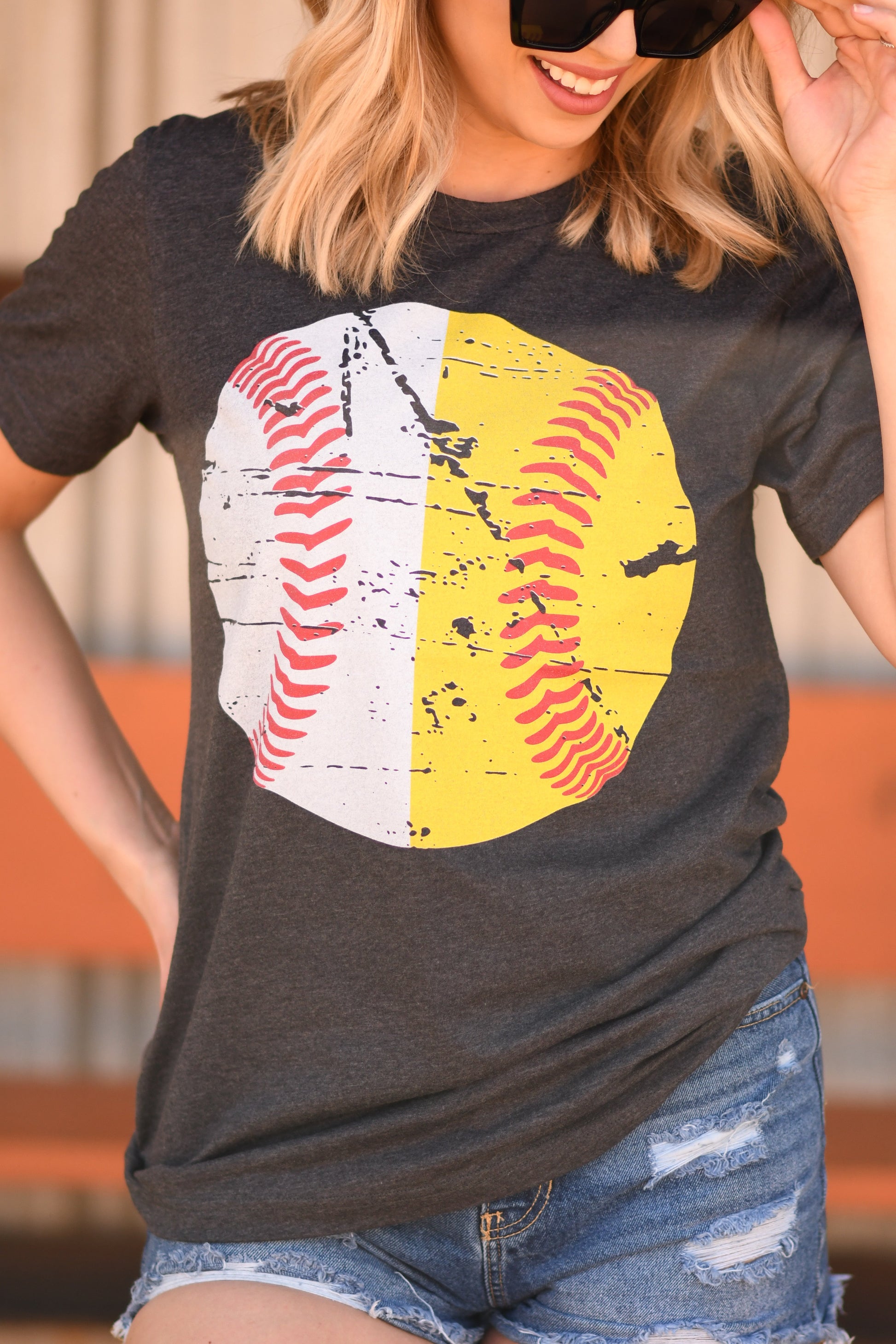 Half Baseball Half Softball PICK YOUR COLOR Tees