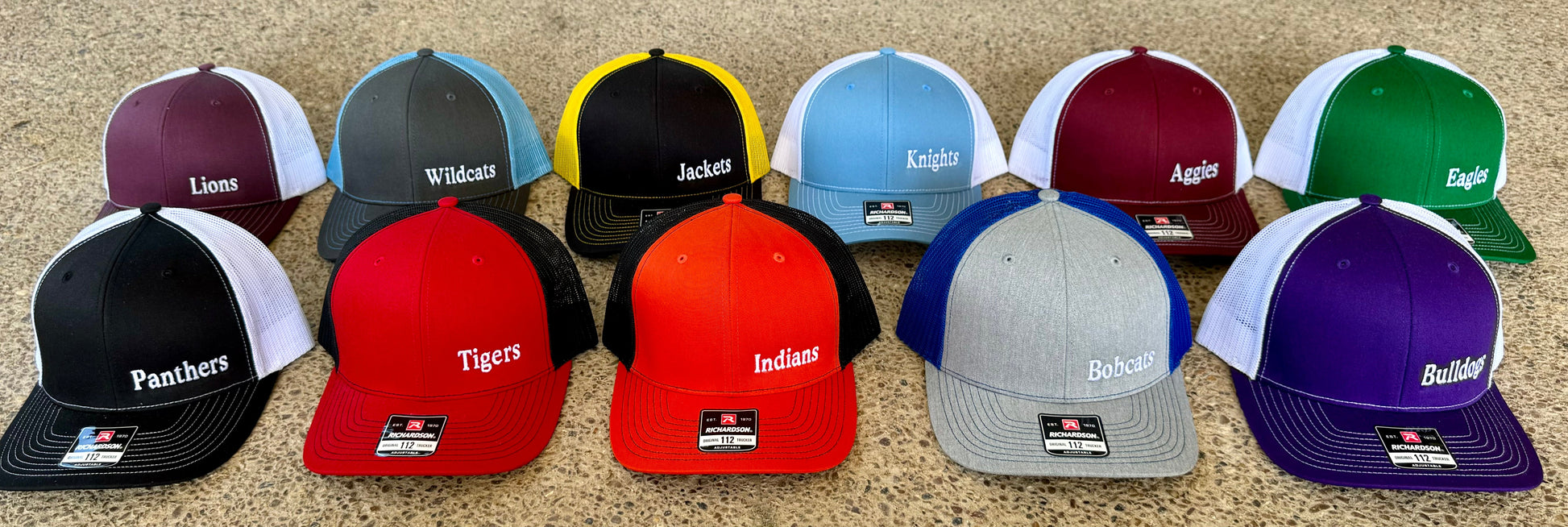 You choose: Hat Color, Thread Color, Mascot or Town Name