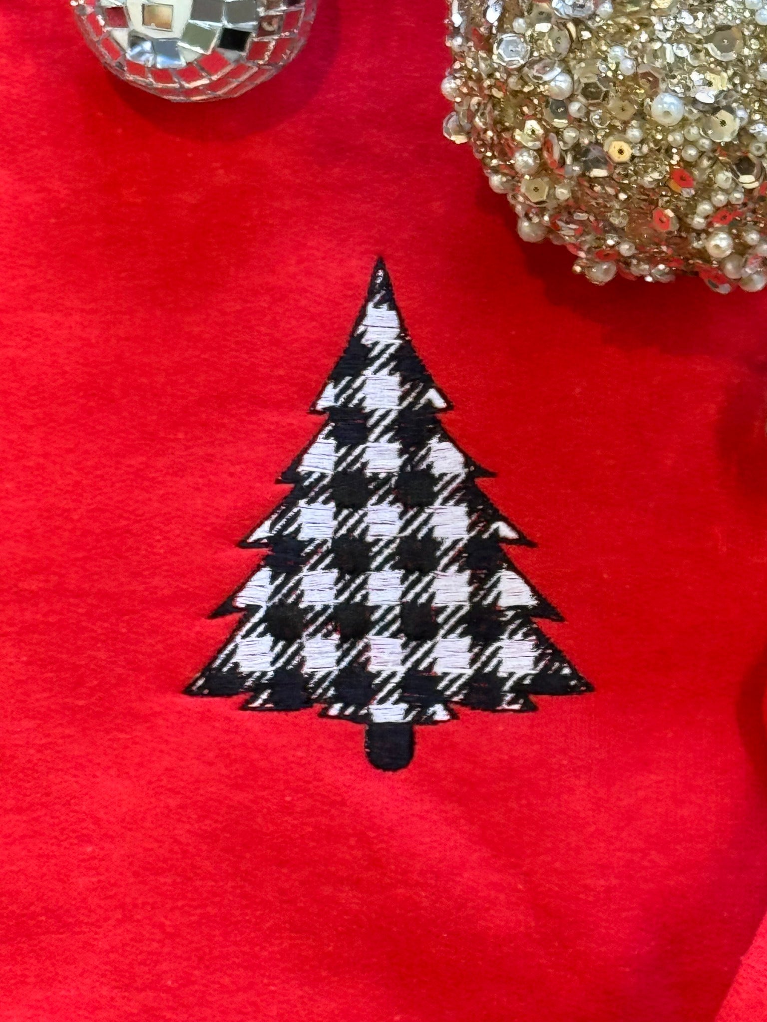 Embroidered Checkered Christmas Tree Sweatshirt