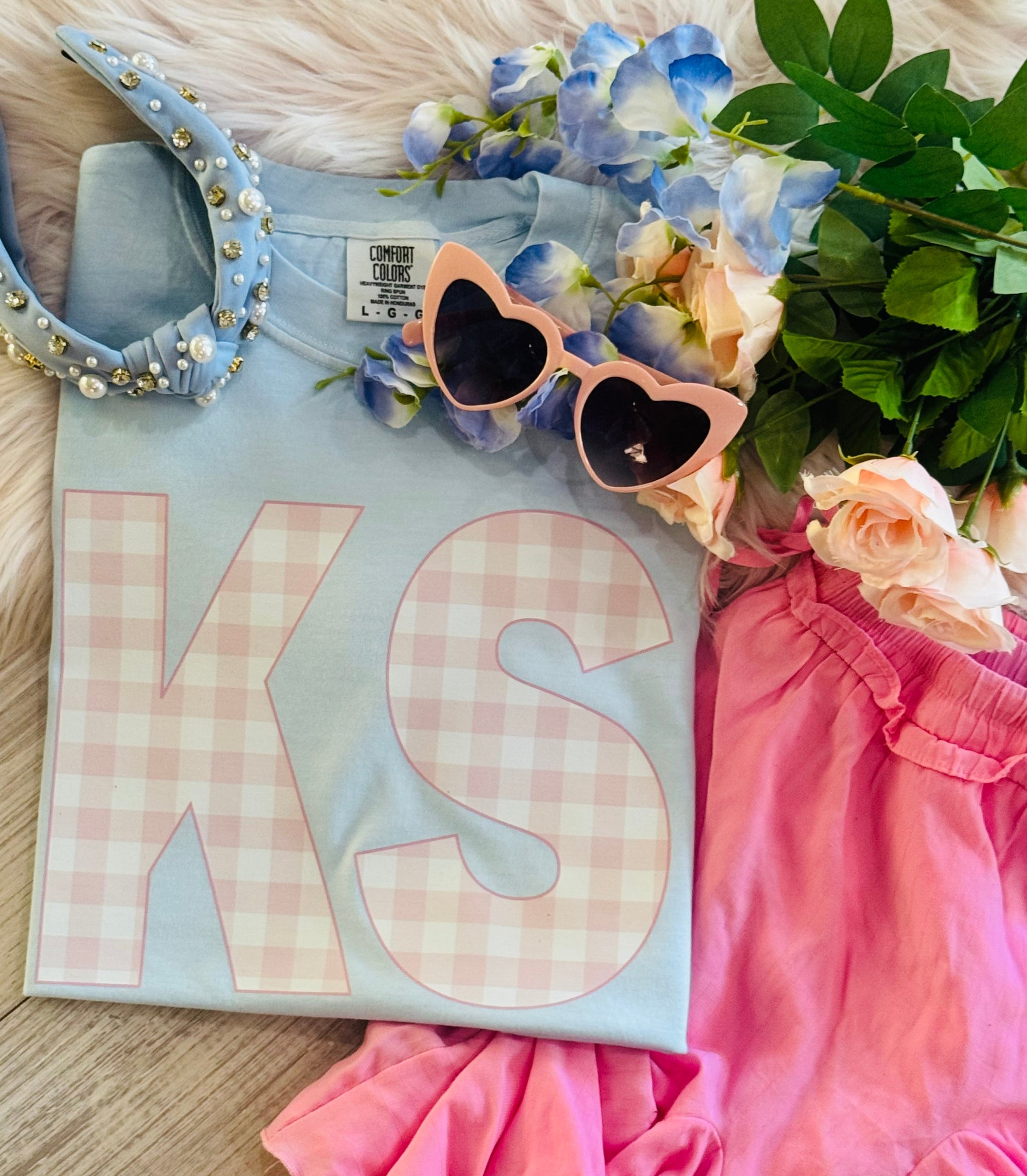 KS Pink Gingham State Sweatshirt/Tee