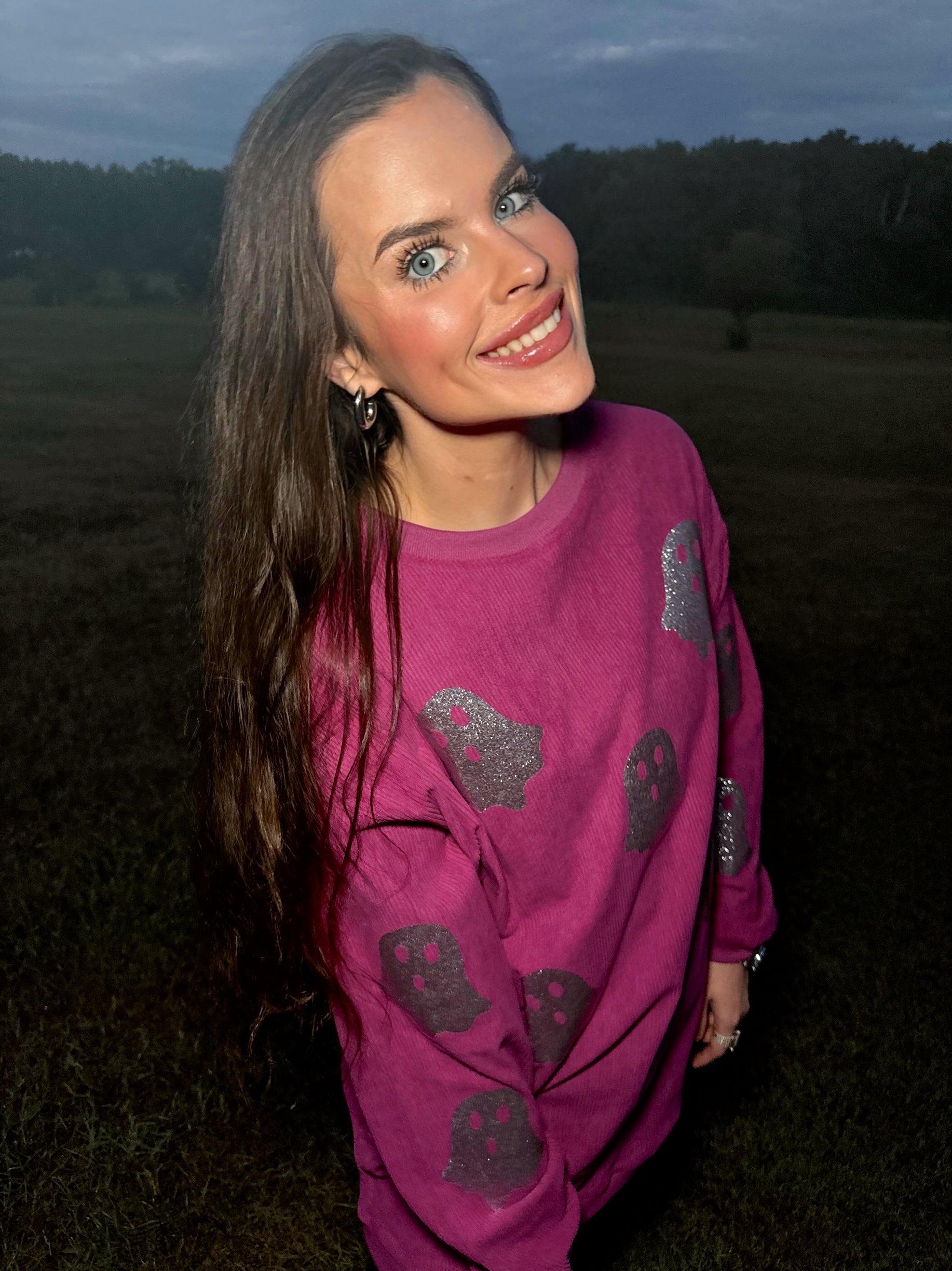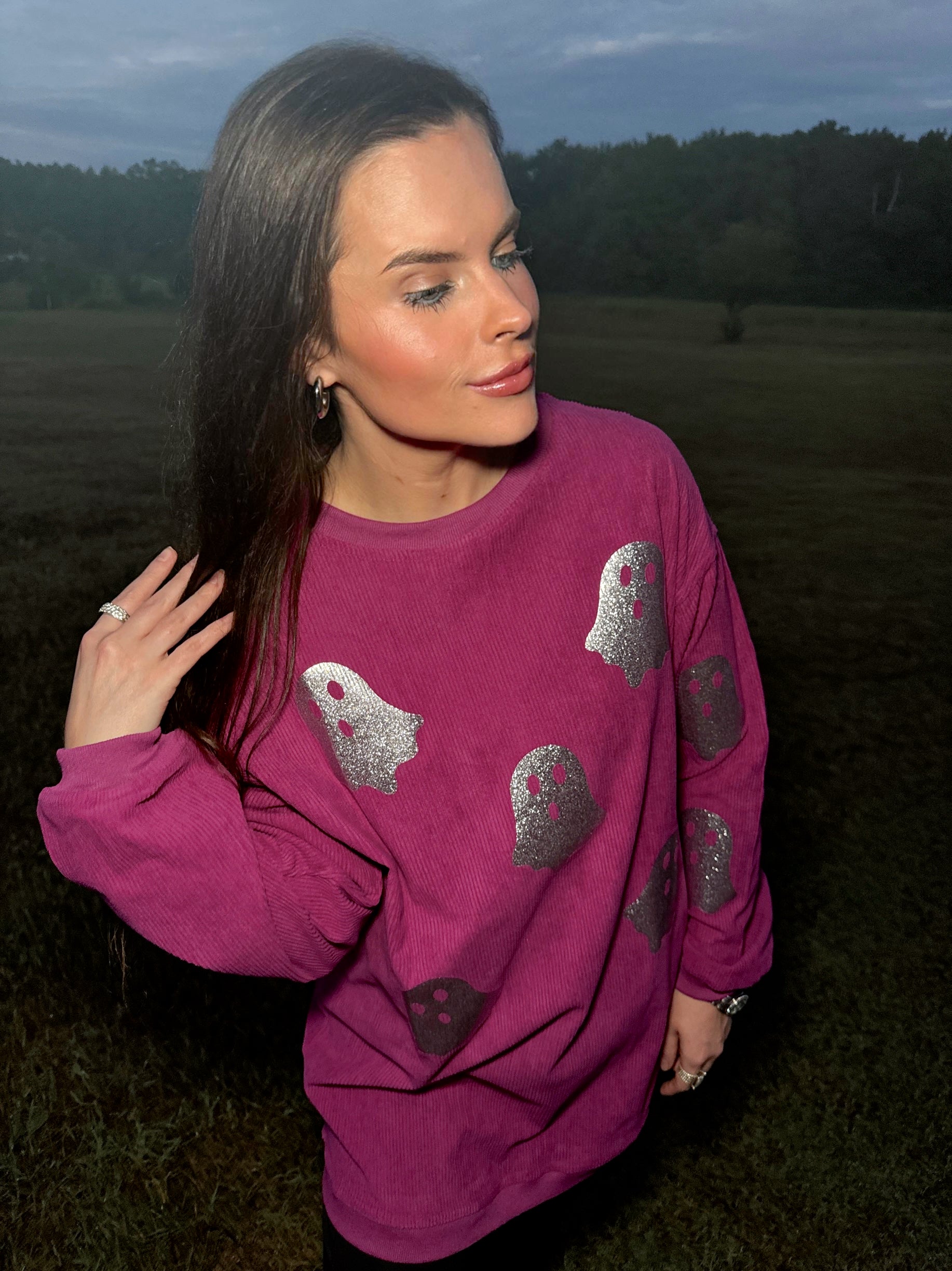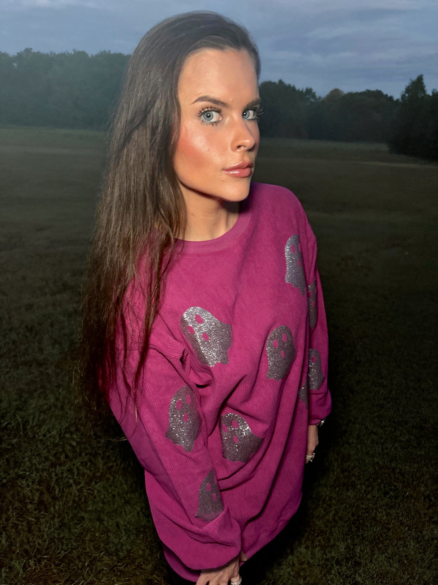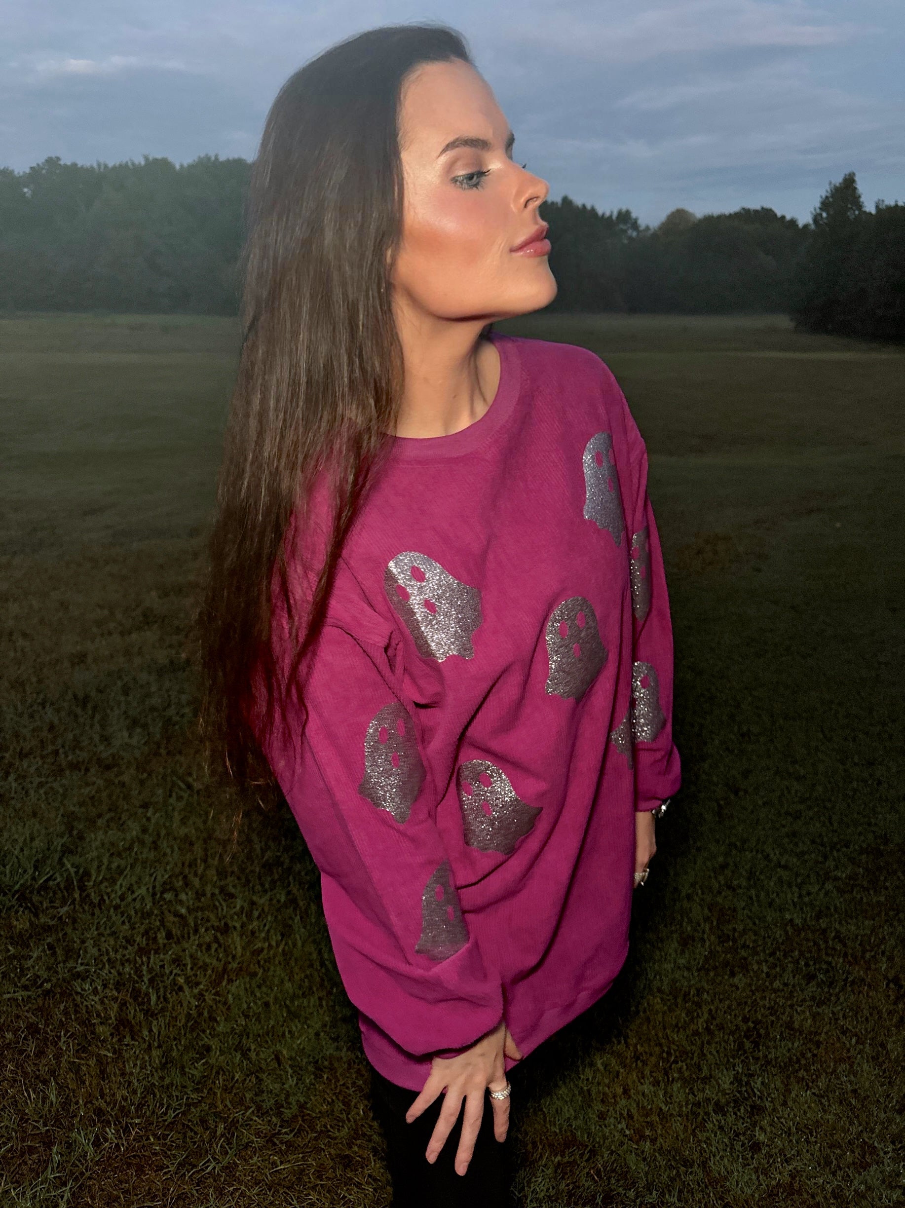 Magenta Glitter Ghost Corded Crew