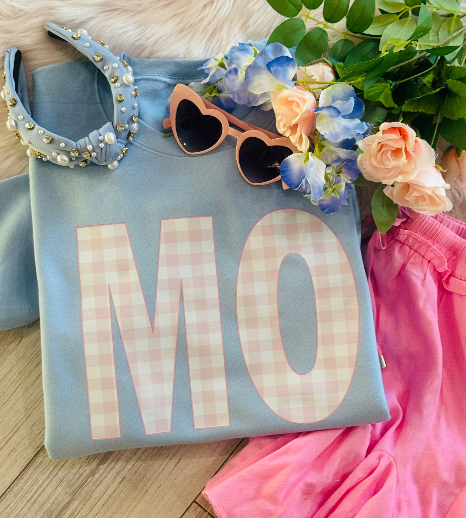 MO Pink Gingham State Sweatshirt/Tee