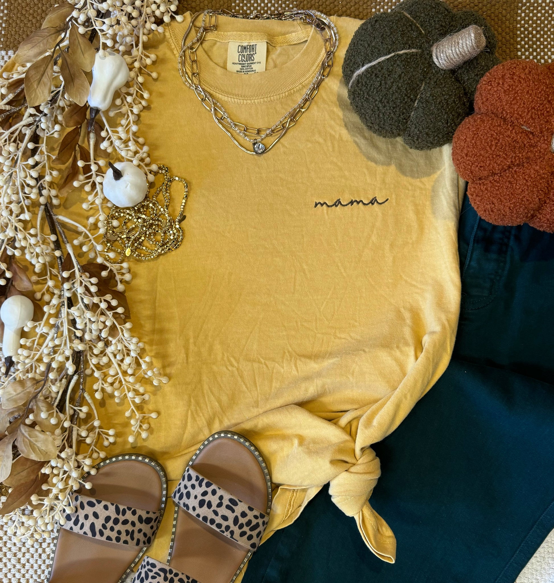 Mustard Dainty Mama Embroidered Tee