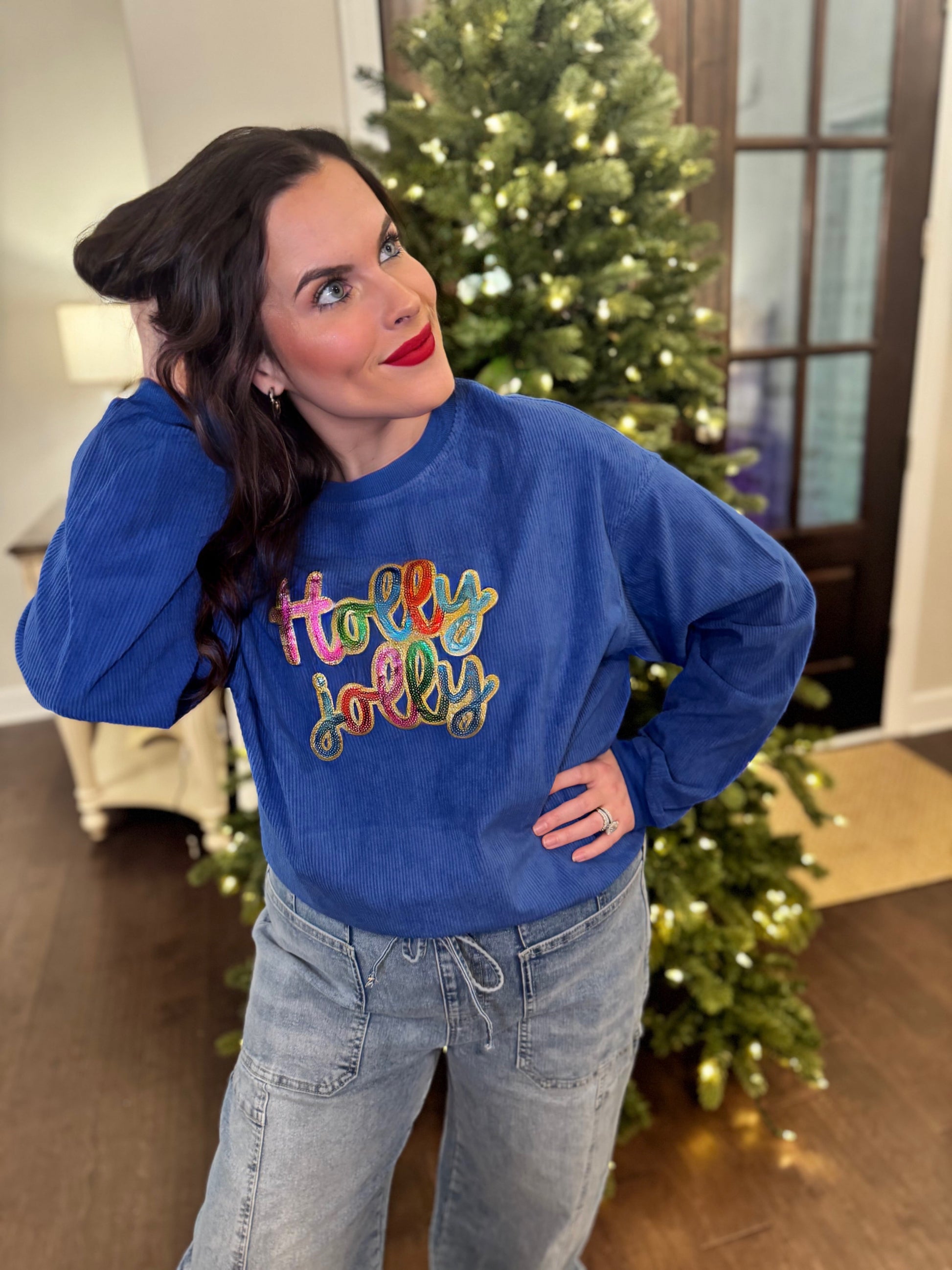 Get ready for the holiday season with J. Lee corded crews! Made from super soft material, this corded crew is perfect for staying cozy and stylish. Plus, it's the perfect length to pair with your favorite leggings. Don't miss out on this festive addition to your wardrobe!