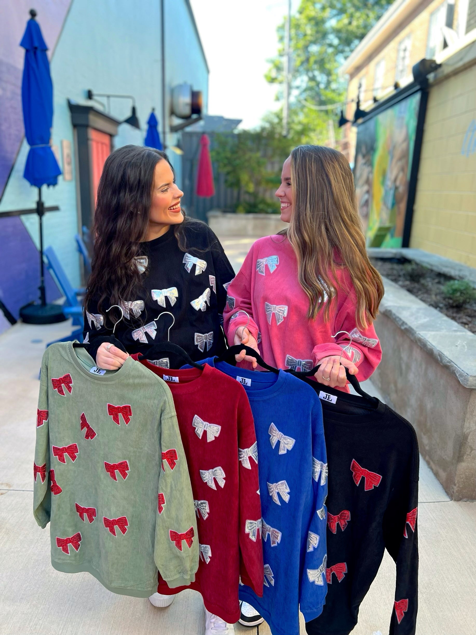 Pink/Silver Sequin Bow Corded Crew