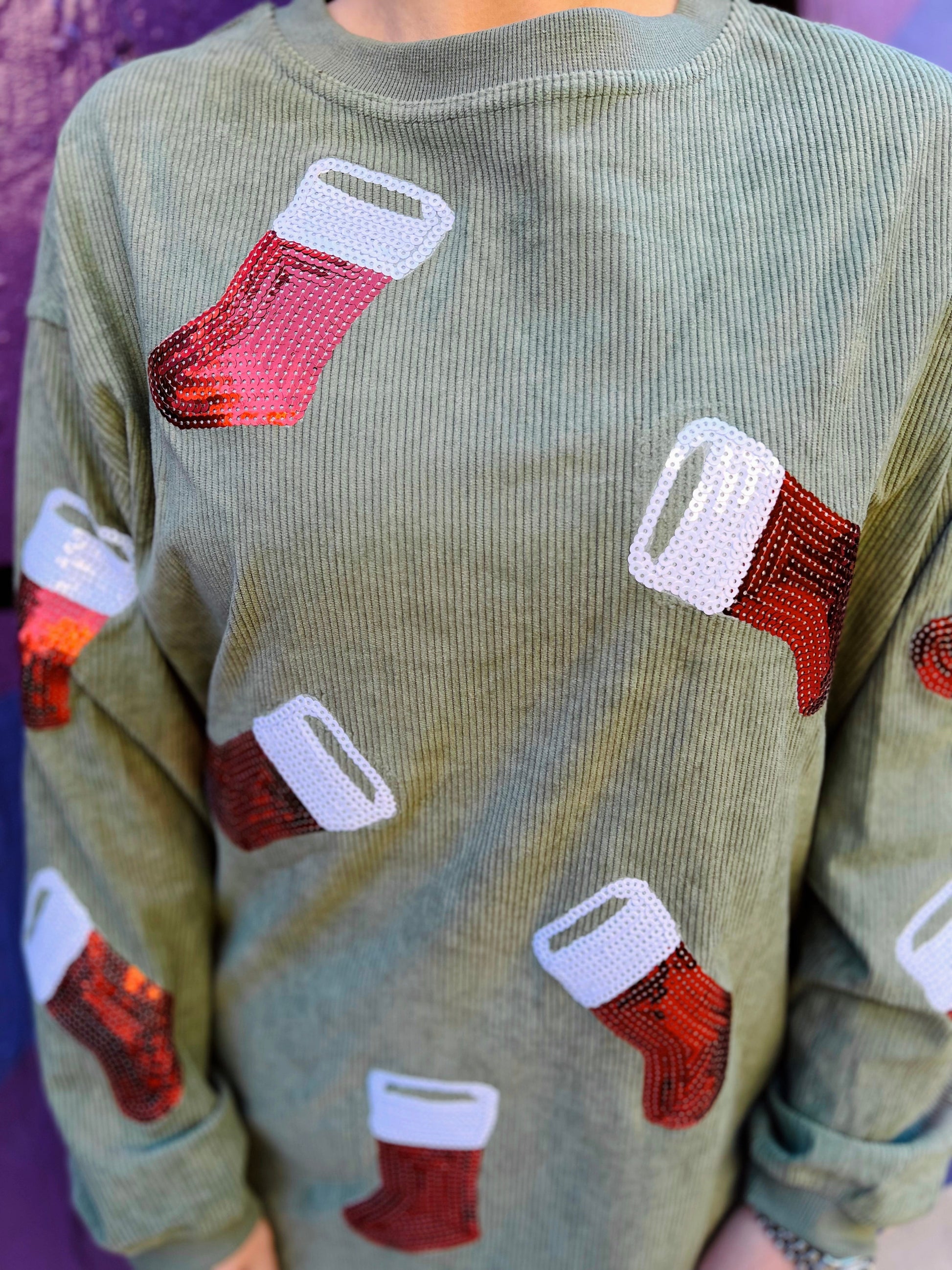 Sequin Stocking Corded Crew