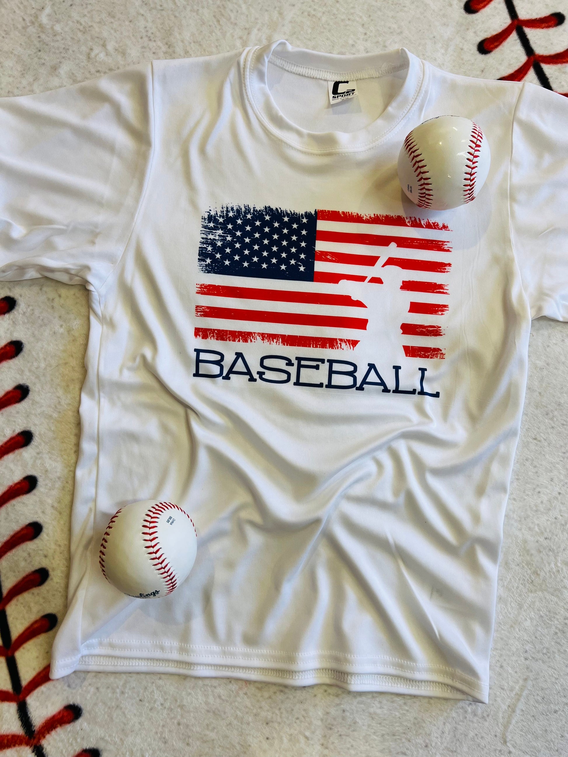Red & Blue Baseball Flag Dri Fit Tee