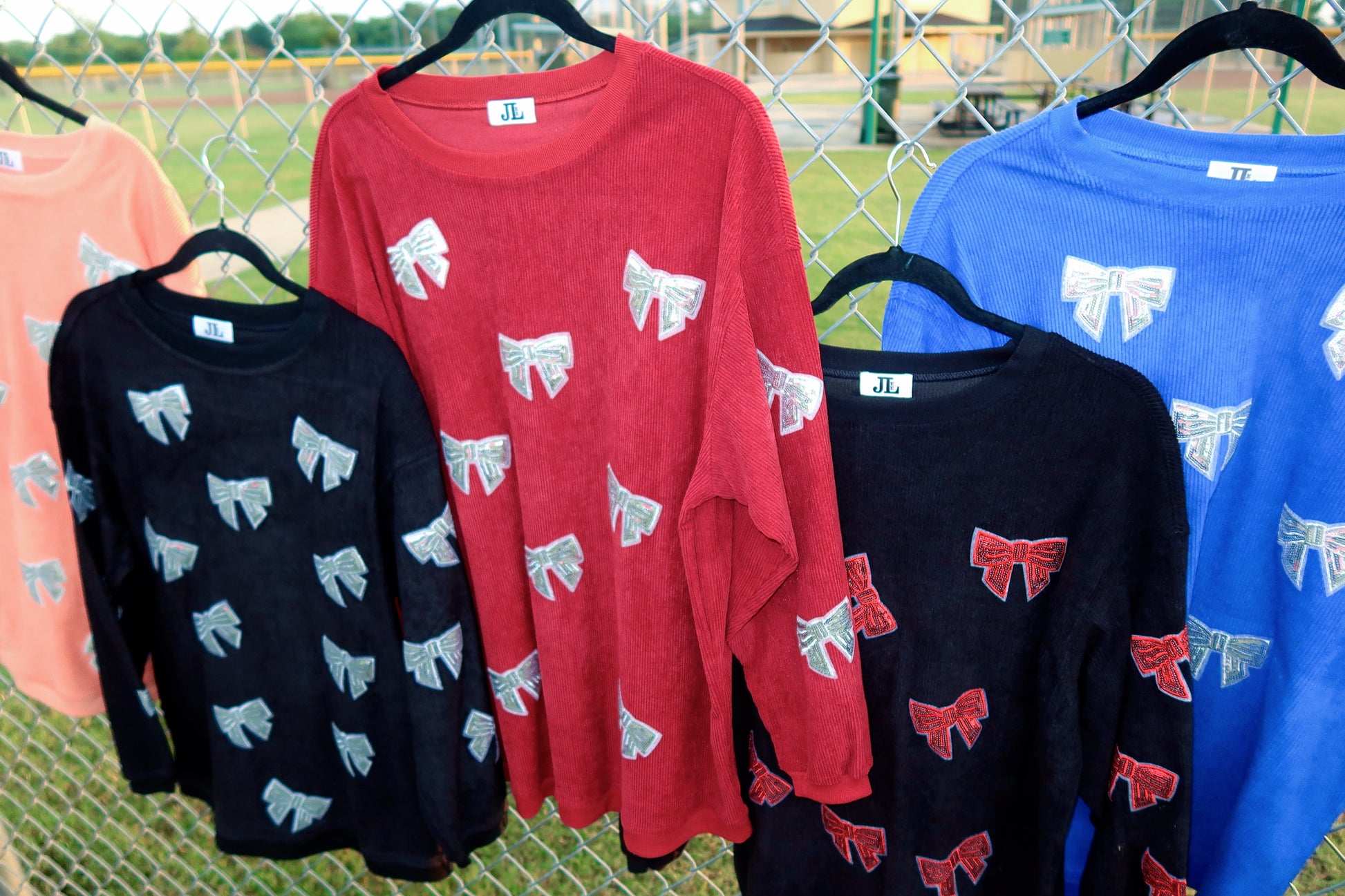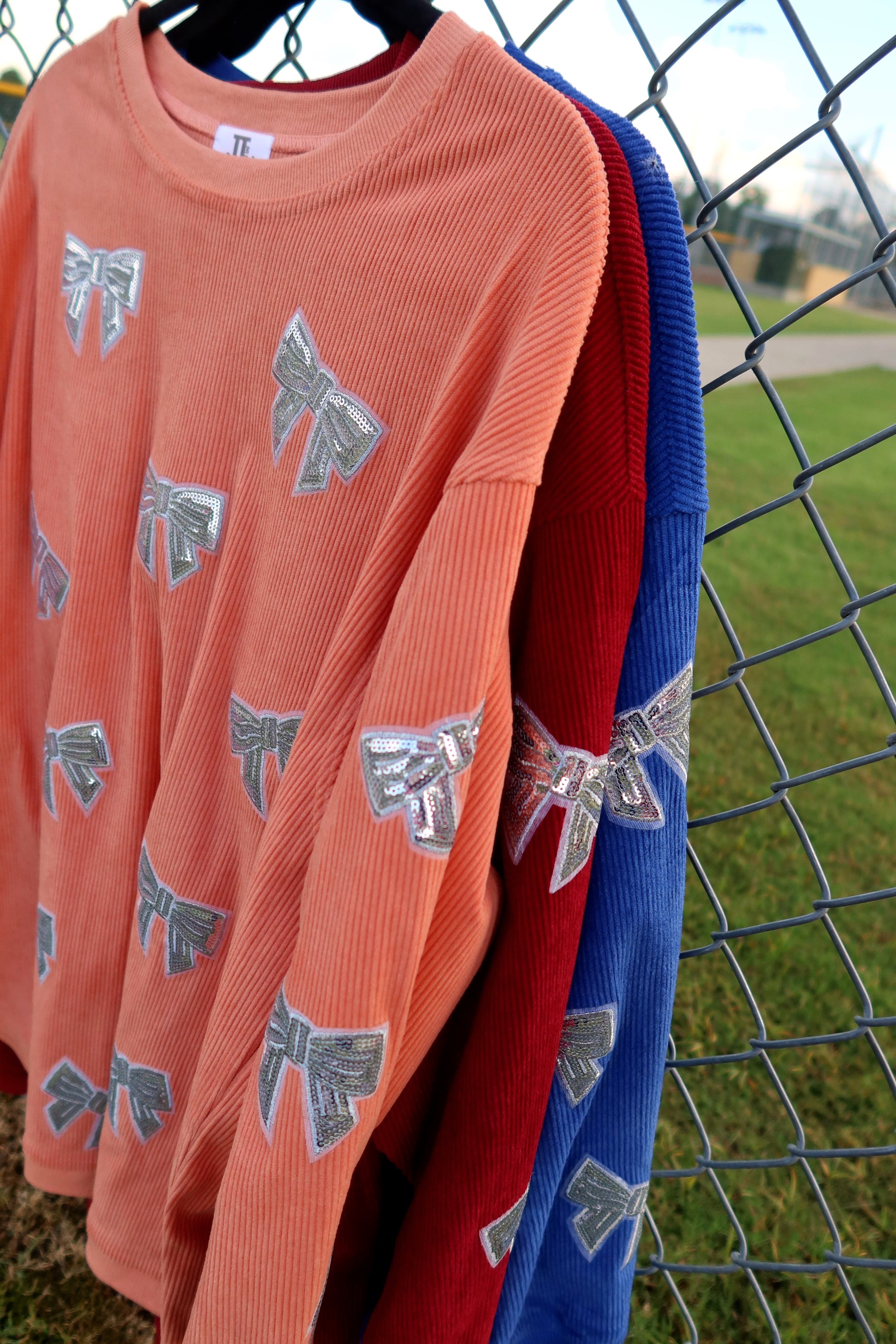 Buttery soft lightweight corded crews. Relaxed fit with a leggings friendly length. Size chart in photos! Check my FB group for preorder timeframes. Corded crews will be continuously available all fall/winter with 1-2 preorder windows per month. Turnaround time from each preorder closing is around 2-3 weeks.